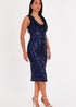 Quiz Navy Sequin Cowl Neck Midi Dress