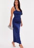 Quiz Navy Square Neck Satin Midaxi Dress