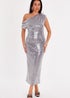 Quiz Silver Sequin Drop Sleeve Midaxi Dress