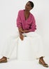 Add a pop of colour to your layers with the Raspberry Long Sleeve Button Up Cardigan. Knitted from soft yarn in a vibrant raspberry shade, this versatile piece features a classic button-up front and a relaxed fit, perfect for wearing over tops, dresses or lightweight knits.