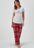 Upgrade your evening collection is easy with this soft pyjama set. Featuring a charming 'hello SANTA' motif, the short-sleeved top comes in a grey colourway and perfectly complements the check print pair of bottoms, finished with stretch to the waistband and a relaxed fit through the legs. What's more, it comes complete in a beautiful bundle to make it perfect for special occasion gifting.