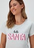 Learn moreUpgrade your evening collection is easy with this soft pyjama set. Featuring a charming 'hello SANTA' motif, the short-sleeved top comes in a grey colourway and perfectly complements the check print pair of bottoms, finished with stretch to the waistband and a relaxed fit through the legs. What's more, it comes complete in a beautiful bundle to make it perfect for special occasion gifting.
