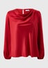 Red Drape Neck Satin Blouse