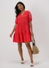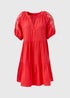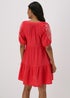 This striking Red Embroidered Smock Tiered Mini Dress in a vibrant shade of red is a must-have for your holiday wardrobe. Crafted from 100% cotton, this lightweight and comfortable dress is perfect for any occasion, from casual daytime events to festive parties. Featuring a eye-catching red hue with intricate sleeve embroidery, in a flattering smock silhouette with a tiered smock skirt.  Pair it with ankle boots and a leather jacket for a chic and edgy look or accessorize with a statement necklace and heels for a glamorous evening ensemble.