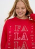 Get into the festive spirit with this Red Fa La La Sweatshirt, a cosy and cheerful essential for the holiday season! Made from a soft cotton-blend fabric, this sweatshirt features a bold “Fa La La” slogan print across the front, bringing instant Christmas cheer to your everyday look.