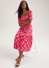 Red Floral Print Shirred Jersey Midi Dress
