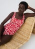 Make a statement by the water with our Red Floral Stamp Square Neck Swimsuit. Featuring a flattering square neckline and vibrant red floral print, this swimsuit combines elegance with playful charm. Crafted from smooth, stretchy fabric, it hugs your curves while providing comfort and confidence for poolside lounging or seaside adventures.