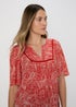 Learn moreAdd a pop of colour to your wardrobe with our Red Patterned Viscose Blouse. This vibrant blouse is perfect for any occasion, whether you're dressing up for a night out or keeping it casual for a day at the office. Crafted from high-quality viscose, this blouse is soft to the touch and features a beautiful crinkled texture that adds a touch of interest. Featuring a boho red pattern, a elegant v-neckline and lace detailing. Pair this blouse with your favourite jeans and heels for a stylish evening look or dress it down with shorts and sandals for a relaxed weekend outfit.