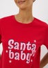 Add a little festive fun to your bedtime look with the Red Santa Baby Slogan Pyjama T-Shirt! Perfect for mixing and matching with your favourite lounge bottoms, this playful top is a holiday must-have. Crafted from soft, breathable fabric, it features a bold red design with the cheeky “Santa Baby” slogan across the front—bringing cosy comfort and Christmas charm together in one piece.