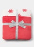 Learn morePrettifying your evening collection is easy with this soft pyjama set. Featuring cosy long sleeves, the toasty fleece top comes in a red colourway and perfectly complements the enchanting snowflake print pair of bottoms, finished with stretch to the waistband and a relaxed fit through the legs. What's more, it comes complete in a beautiful bundle to make it perfect for special occasion gifting.