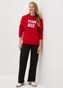 Learn moreGet into the festive spirit with the Red Team Nice Sweatshirt, perfect for adding some playful fun to your holiday wardrobe. Made from a soft and cosy fabric blend, this sweatshirt ensures all-day comfort while spreading a little holiday cheer. Featuring a bold "Team Nice" slogan across the front in standout lettering, this festive red sweatshirt is perfect for those embracing their nice side this Christmas. The classic crew neck design and relaxed fit make it easy to pair with jeans or lounge pants for casual, laid-back holiday looks.