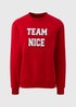 Get into the festive spirit with the Red Team Nice Sweatshirt, perfect for adding some playful fun to your holiday wardrobe. Made from a soft and cosy fabric blend, this sweatshirt ensures all-day comfort while spreading a little holiday cheer. Featuring a bold "Team Nice" slogan across the front in standout lettering, this festive red sweatshirt is perfect for those embracing their nice side this Christmas. The classic crew neck design and relaxed fit make it easy to pair with jeans or lounge pants for casual, laid-back holiday looks.