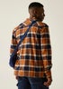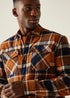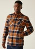 The Spennith men's shacket from Regatta blends shirt style with jacket warmth. Made from cotton twill with a brushed check finish, it offers a relaxed look. A quilted fleece lining adds warmth, while multiple pockets provide practicality for casual outings.