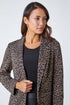 Animal Print Stretch Jacket from Roman. Looking to freshen up your workwear? Look no further than this ponte animal print jacket. It features a flattering edge to edge open front and full length sleeves providing both formality and fashion. This smart casual piece is crafted from a comfortable woven stretch material and is fully lined for a premium finish. This rever collar jacket is finished with pockets and turned up cuffs. Pair with tailored trousers for work or leather leggings for an evening with friends!