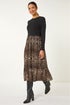 Roman Beige 2 in 1 Animal Print Stretch Midi Dress
