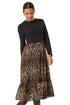 2 in 1 Animal Print Stretch Midi Dress from Roman. Unleash your wild side with this 2 in 1 animal print midi dress. Crafted from a comfortable woven stretch fabric, this dress features a flattering round neckline and long sleeves perfect for the Autumn Winter season. The wild animal print adds a touch of boldness, while the versatile 2 in 1 style makes it a wardrobe staple. Finishing at a modest midi length, this dress hugs your curves beautifully. Complete the look with your favourite winter boots, tights and coat for the ultimate Autumn style statement!