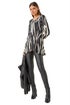 Brush Print Hanky Hem Stretch Tunic Top from Roman. Add an artistic touch to your Autumn and Winter wardrobe with this playful brush print tunic top. Featuring a modest neckline, this tunic boasts elegant 3/4 length sleeves adorned in linear brushstrokes for an artistic flair. The feminine hanky hem finish adds a stylish touch to this comfortable jersey stretchy plisse fabric top, perfect for the season. Dominate the cold in style by pairing it with jeggings and boots for a casual day out!