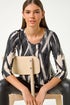 Roman Beige Brush Print Hanky Hem Stretch Tunic Top