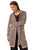 Learn moreChevron Knit Cardigan from Roman. Add a touch of cosy chic to your Autumn/Winter wardrobe with this hooded chevron knit cardi. Featuring a flattering longline silhouette, this cardigan boasts an intricate chevron knit pattern and practical front pocket detail. The long sleeves provide extra warmth, making it the perfect layering piece for the cooler seasons. Pair with your favourite jeans and ankle boots for a stylish and comfortable look that's perfect for any casual outing!
