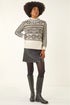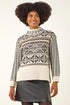 Jacquard Stitch Knit Jumper from Roman. Stay stylish and snug in this Jacquard Stitch Knit jumper, perfect for the Autumn and Winter season. The soft ivory fabric is adorned with elegant beige and black stitch detailing, creating a chic and timeless look. With a high neckline and intricate cable detailing, this jumper is a sophisticated choice for cooler days. Pair it with your favourite jeans and ankle boots for a classic and stylish outfit!