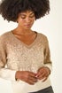 Roman Beige Sparkly Ombre V-Neck Knit Jumper