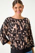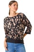 Abstract Banded Hem Stretch Top from Roman. Update your Winter wardrobe with this chic abstract print top. Featuring a classic round neck and 3/4 sleeves, this stylish top is made from a stretch jersey fabric for ultimate comfort. The standout feature is the banded hem complete with a tie detail for a modern touch. Simply pair with leggings and boots for a casual yet fashionable look on chilly days!