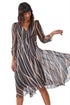 Roman Black Abstract Chiffon Wrap Asymmetric Midi Dress