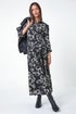 Roman Black Abstract Circle Print Midi Shirt Dress