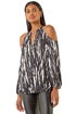 Roman Black Abstract Print Cold Shoulder Stretch Top