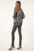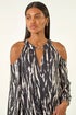 • Roman Black Abstract Print Cold Shoulder Stretch Top