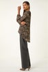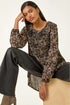 Roman Black Abstract Print Pleated Top
