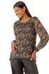Abstract Print Pleated Top from Roman. Make a bold statement this Autumn and Winter with this stunning abstract pleated top. Featuring an eye catching all over print, this top has a classic round neck and versatile 3/4 length sleeves with an elasticated cuff that can be worn full length. The dropped hem at the back adds a modern touch to the traditional design. Pair with your favourite jeans and ankle boots for a chic and stylish outfit!