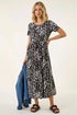 Animal Print Stretch Midi Dress from Roman. Unleash your wild side in this fabulous animal print midi dress. With short sleeves and a classic round neckline, this dress is a must-have for your Spring Summer wardrobe. Cut from a smooth stretch fabric with a bold animal print that adds a touch of excitement. Style it with a denim jacket and wedged heels to create the perfect look!