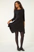 Asymmetric Textured Pleat Dress from Roman. Stay effortlessly trendy in our stunning asymmetric textured pleat dress. This knee length dress is versatile for your Autumn Winter wardrobe, featuring a classic round neckline and elegant 3/4 length sleeves. The unique hanky hem adds a touch of femininity and interest to this fit & flare dress. Pair it with tights and ankle boots for a stylish and sophisticated look that will easily take you from day to night.