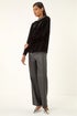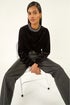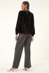 Beaded Neck Velvet Top from Roman. Shimmer and shine in this beading velvet top designed for the Autumn Winter season. Crafted from stretch jersey fabric, this top features elegant long sleeves and intricate beading detail around the neckline. The top finishes in a tee shape, combining comfort with style effortlessly. Pair it with leather trousers and heels for a sophisticated look that's perfect for any evening occasion!