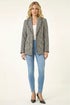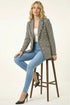 Boucle Frayed Edge Jacket from Roman. Elevate your wardrobe with this sophisticated frayed edge boucle jacket. Impeccably tailored in a timeless check print design, this jacket features an edge front opening with charming button details. The classic collar and revere add a smart touch, while front flap pockets offer both style and practicality. Fully lined for a luxurious feel, this jacket is perfect to layer over your favourite blouse and trousers for a polished look!