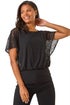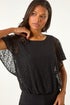 Burnout Print Bubble Hem Top from Roman. Get ready to elevate your Autumn Winter wardrobe with our smart burnout print top. The flattering round neckline and stylish short length sleeves make it a versatile piece for any occasion. Crafted from a comfortable stretch jersey fabric, this top features a unique burnout mesh detail for an added touch of elegance. The contrast folded banded hem creates a flair to this bubble hem top. Pair with wide-leg trousers and ankle boots for a fashion-forward look that's perfect for the season!
