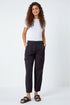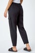 Roman Black Casual Elastic Waist Cargo Stretch Trousers