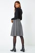 Chevron Print Belted Jumper Dress from Roman. Upgrade your daytime wardrobe with this elegant knee-length, knitted dress. Cut from a soft knitted fabric this dress features a modest round neckline and cosy full-length sleeves. A printed, panelled contrast skirt falls to a fun knee-length in a flattering fit and flare style. A self-tie fabric belt adds shape at the waist if desired while its pull-on style makes for quick and easy dressing. Pair with tights, boots and a fluffy gilet for a cute and casual everyday style!