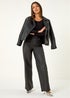 Coated Stretch Waist Wide Leg Jeans from Roman. Add a touch of glam with our coated wide-leg jeans to your Autumn Winter wardrobe. Cut in a sleek tailored style, these jeans feature a glossy appearance that's perfect for evening wear or a daytime look. Fused with practical elements such as secure zip button fastening, belt loops, and angled side pockets for a modern edge. The design includes a waistband for a suited fit, and back pockets for added practicality. Pair with a heeled boot and cropped jacket to shine this season!