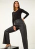 Roman Black Coated Stretch Waist Wide Leg Jeans