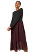 Contrast Print Mesh Skirt Midi Dress from Roman. Stand out this Autumn Winter in our contrast abstract print stretch midi dress. Featuring a classic round neckline and long sleeves, this dress is the perfect combination of elegance and edge. The mesh skirt adds a touch of femininity, while the practical pocket detail brings a modern twist. Style it with ankle boots and a leather jacket for a trendy look that will turn heads wherever you go!