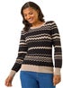 Contrast Zig Zag Knitted Jumper from Roman. Keep cosy this Autumn Winter in our contrast zig zag knitted jumper. Designed with a classic crew neckline and long sleeves, this soft knitted piece features a striking contrast zig zag pattern for added style. The jumper shape provides a stylish fit, making it a versatile piece for your wardrobe. Pair with a denim jacket and jeggings for a complete look!