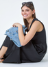Roman Black Cotton Stretch Jersey Mix Midi Dress