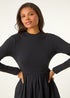 Roman Black Cotton Stretch Jersey Mix Midi Dress