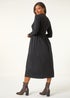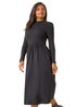 Cotton Stretch Jersey Mix Midi Dress from Roman. Add sophistication to your Autumn Winter wardrobe with our mix fabric stretch midi dress. Featuring a flattering round neckline and long sleeves, this versatile dress boasts a fit and flare silhouette that finishes elegantly at midi length. Complete with practical side pockets and a gathered waist for added shape, this dress is the perfect combination of glam and comfort. Style up or down with boots or trainers and layer with a jacket for the ultimate fall look!