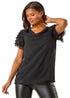 Roman Black Cowl Neck Shoulder Sequin Frill Top