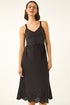 Crochet Strappy Midi Dress from Roman. Dazzle in this charming crochet strappy midi dress, perfect for those sunny Spring and Summer days. The v-neckline and intricate crochet bodice add a touch of romance, while the shirring on the back bodice ensures a comfortable fit. Delicate schiffli detailing at the hem adds a bohemian flair to this delightful dress. Complete your look with sandals and a denim jacket for a chic casual ensemble!