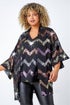 Curve 3/4 Sleeve Sequin Zig Zag Kimono from Roman. Update your partywear collection with this glitzy kimono jacket! The shimmering zig zag sequin embellishment is sure to have you dazzling on the dancefloor this party season. This Curve coverup features an edge to edge opening, 3/4 sleeve silhouette and a floaty wide sleeve. Get special occasion ready by pairing with our matching cami top (20141708) and faux leather trousers!