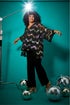 Roman Black Curve 3/4 Sleeve Sequin Zig Zag Kimono